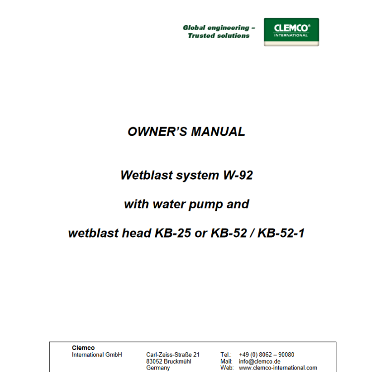 Το W-92 χρησιμεύει ως συσκευή πρόσθετων εξαρτημάτων υπό πίεση και αυτοαναρροφούμενη για μηχανήματα και μπορεί να τροφοδοτηθεί με νερό απευθείας από δεξαμενή νερού ή από το δίκτυο νερού. Σε συνδυασμό με μια κεφαλή (KB-25/-52), η αντλία λειτουργεί ως σύστημα υδροαμμοβολής , το οποίο καλύπτει τη σκόνη στο νερό και επιτρέπει μια διαδικασία υδροαμμοβολής χωρίς σκόνη.