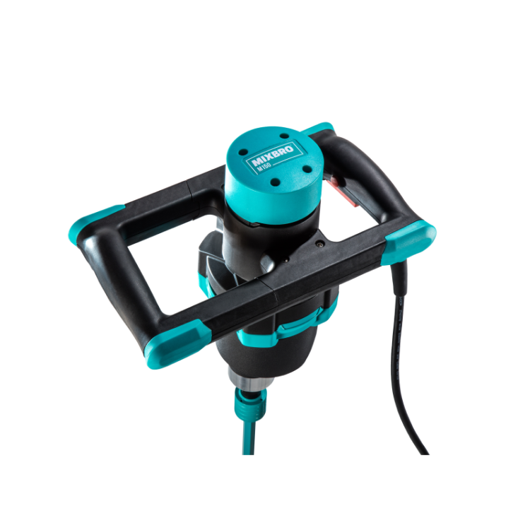 Ισχυρός επαγγελματικός αναμικτήρας για καθημερινή χρήση σε εργοτάξια για εφαρμογές ανάμιξης όλων των ειδών, έως και 3 σάκους υλικού. Κιβώτιο ταχυτήτων 2 ταχυτήτων υψηλής ροπής σε χυτοπρεσσαριστό περίβλημα από αλουμίνιο για αραιά, βαριά ή σκληρά μίγματα. Με απείρως μεταβλητό, ηλεκτρονικό έλεγχο στροφών για ελεγχόμενη ανάπτυξη ισχύος.Ιδανικό για σκυρόδεμα, γύψος, κόλλα πλακιδίων, κονίαμα, χρώμα, βερνίκια, Αυτοεπιπεδούμενα , συγκολλητικά κονιάματα, ριπολίνες, κόλλες πλακιδίων, κονιάματα τοιχοποιίας τσιμεντοκονίε