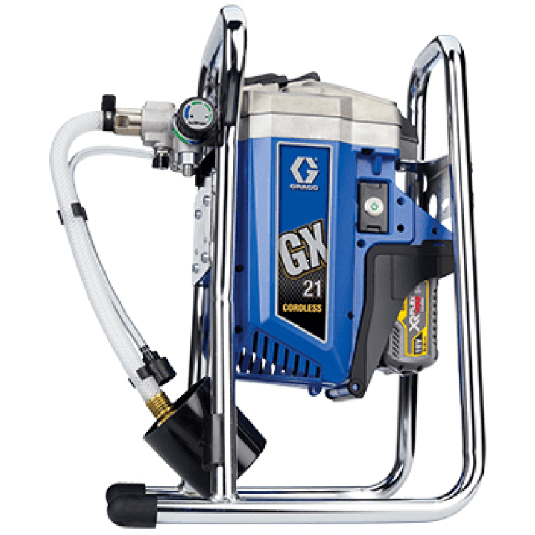 Το Graco GX 21 Cordless είναι το πρώτο υψηλών επιδόσεων ασύρματο airless μηχάνημα βαφής, ιδανικό για επαγγελματίες που δραστηριοποιούνται σε ανακαινίσεις, νέες κατασκευές και λεπτές βαφές. Χωρίς καλώδια και ανάγκη για ρεύμα, σας προσφέρει πλήρη ελευθερία κινήσεων και σταθερή ισχύ ψεκασμού όπου κι αν βρίσκεστε.