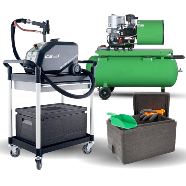 Μηχάνημα ξηρού πάγου και κομπρεσέρ για χρήση σε συνεργεία, αντιπροσωπείες αυτοκινήτων καθώς και σε εταιρείες που δραστηριοποιούνται στον κλάδο της βιομηχανίας ανεξάρτητα από το μέγεθος τους. Ο παρακάτω συνδυασμός αποτελεί την πιο συμφέρουσα και αποτελεσματική λύση για εργασίες καθαρισμού με την χρήση ξηρού πάγου ενώ ο καλά μελετημένος σχεδιασμός τους σας επιτρέπει τον άνετο χειρισμό τους ακόμη και στα πιο στενά και δύσκολα σημεία.