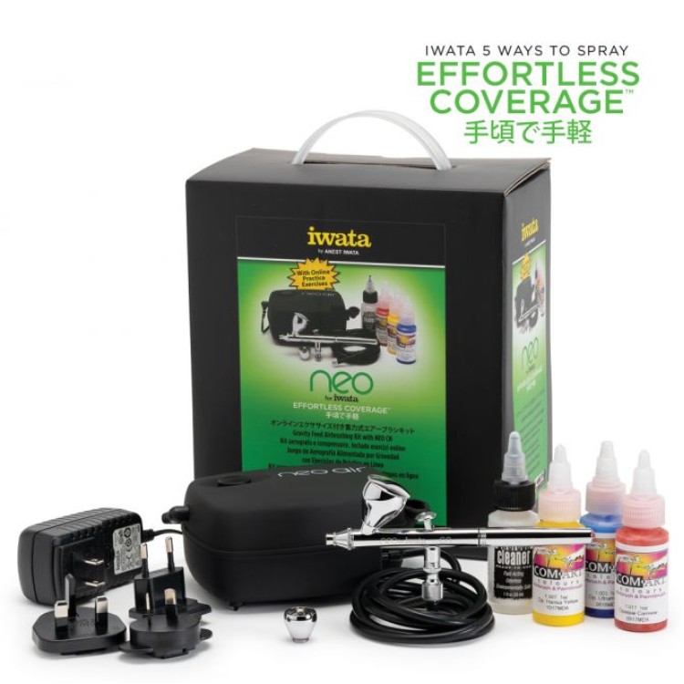Αυτό το κιτ διαθέτει τον αερογράφο NEO for Iwata CN, ο οποίος έχει σχεδιαστεί για να προσφέρει ομοιόμορφη κάλυψη σε χαμηλές πιέσεις αέρα και το καθιστά εύκολη επιλογή για πολλούς τύπους εφαρμογών ψεκασμού. Ο συγκεκριμένος αερογράφος διαθέτει αποσπώμενο δοχείο υγρού 7 ml με αρκετά μεγάλο καπάκι για ανάμειξη χρωμάτων και επιπλέον χρωματικό κύπελλο 1,50 ml που είναι ιδανικό όταν χρησιμοποιείτε μικρές ποσότητες μέσου ψεκασμού.