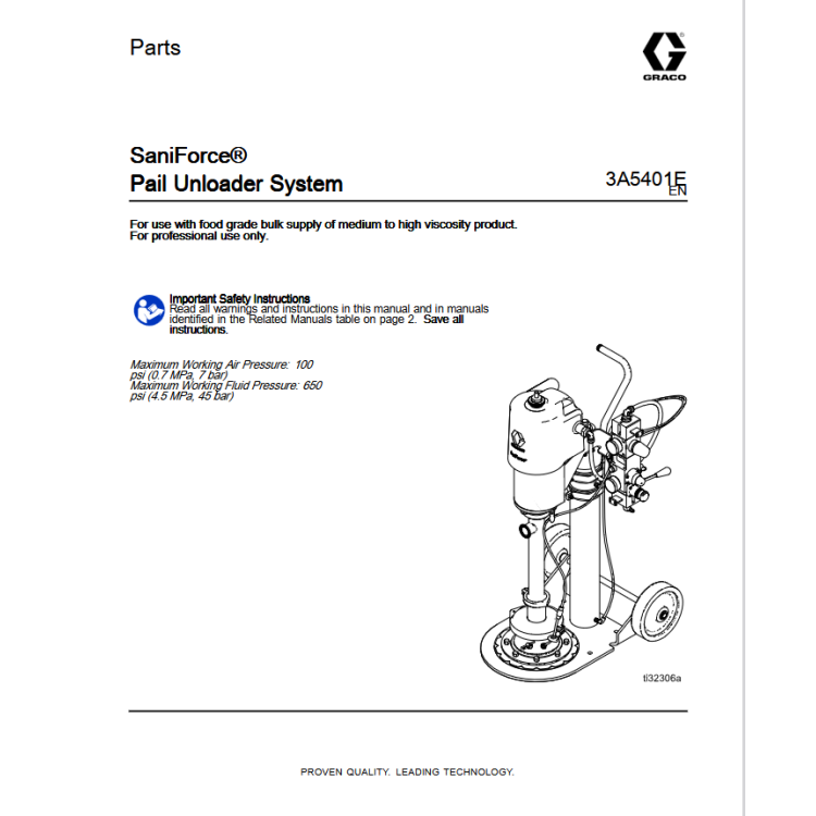 SaniForce Pail Unit, Stainless Steel Frame, 6:1 PP, Buna Wiper Seal, Exposed Controls