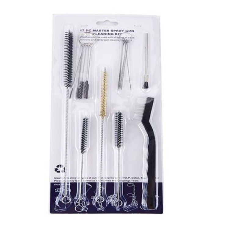 Διατηρήστε τα πιστόλια βαφής σας πάντα καθαρά και λειτουργικά! Το σετ καθαρισμού 17 τεμαχίων περιλαμβάνει: 1) 3 τμχ βουρτσακια 2) 5 τμχ βουρτσακια μικρα: Dia 2/2.5/3/4/5mm 3) 6 τμχ βελονε καθαρισμου: 9/10/11/12/13/14mm 4) 1 τμχ συρμάτινη βουρτσα 5) 1 τμχ βουρτα μακρια με μαλακο τριχωμα 6) 1 τμχ πινελο καθαρισμου